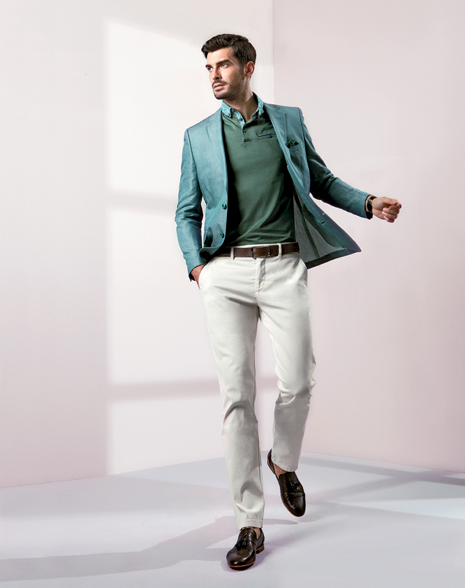 Pierre Cardin İlkbahar/Yaz Erkek Koleksiyonu için gerçekleştirilen bu moda çekiminde, baskın renklerin pastel tonlarla tamamlandığı ve desenlerin özgürce bir arada kullanıldığı bir stil ön planda. 70’li ve 80’li yıllardan sonra sonra erkeklerin en renkli görüneceği dönem bu olmalı! Adaçayından naneye yeşilin her tonu, buz mavisi keten takımlar, kobalt mavisi bermudalar, yaz günlerinin kurtarıcısı polo yaka tişörtler, kot ile tamamlanan bej ve krem tonlarında ceketler ve pek çok parçada göz kırpan ekose detaylar bu çekimde ön planda.
